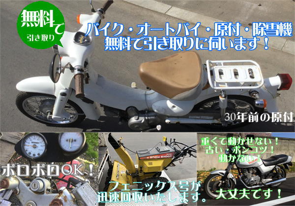 旭川市でバイク・オートバイ・除雪機の処分にお困りの時には当社サービスをご利用ください